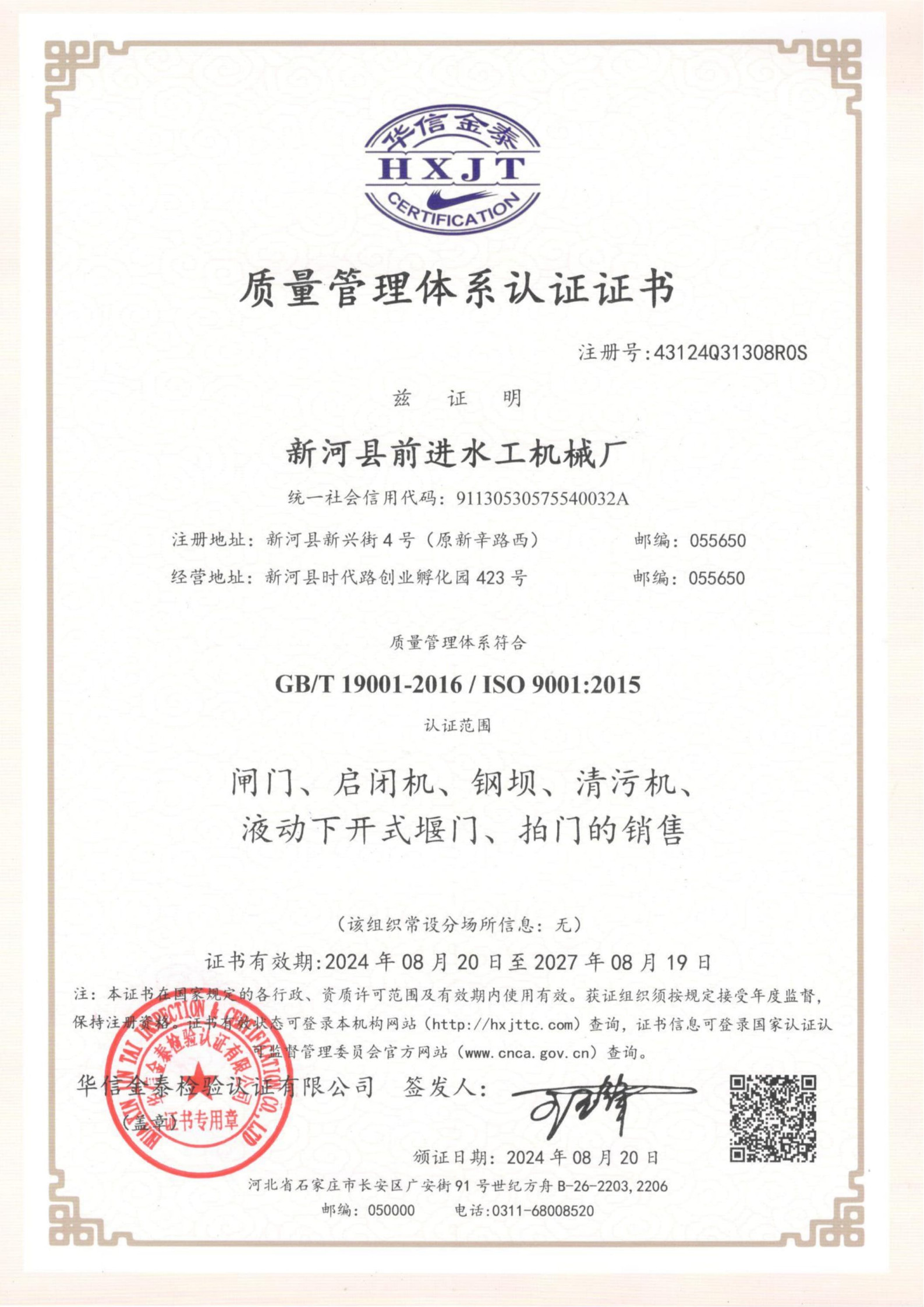 新河縣前進(jìn)水工機(jī)械廠是一家專門從事水利工程設(shè)備研發(fā)生產(chǎn)的廠家,現(xiàn)有員工228人,各類高、中級(jí)專業(yè)工程技術(shù)人員近30人,技術(shù)生產(chǎn)工人180多人。公司占地面積14674平方米。公司擁有車、鉗、刨、銑、冷作、鈑金、鑄造等,工種齊全,加工能力和技術(shù)力量雄厚,并具備理化測(cè)試手段與儀器設(shè)備。前進(jìn)水工專注景觀閘門,鋼壩,合頁壩,液壓升降壩,液壓閘門,臥倒門,一字門,人字門,液壓?jiǎn)㈤]機(jī),卷揚(yáng)啟閉機(jī),螺桿啟閉機(jī),清污機(jī),除污機(jī),閘門,拍門等設(shè)備的研發(fā)與生產(chǎn),是新河水利工程產(chǎn)品行業(yè)的領(lǐng)跑者,不僅在同行業(yè)群中揭起了一次又一次的技術(shù)革新,更為水利工程企業(yè)提供了更高更大的選擇平臺(tái)。